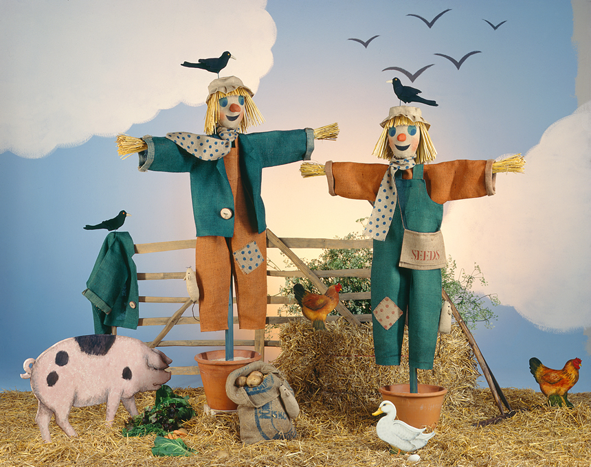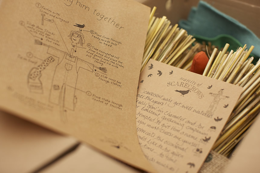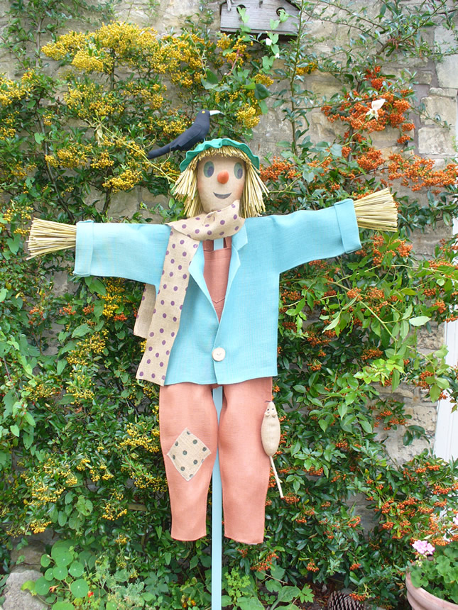 A note slipped into the pocket of each one as he sets off through the barn doors to start his working life, takes the lighthearted approach a stage further. "Scarecrow will get well watered over the years... He will 'grow' in character and be your constant gardening companion."